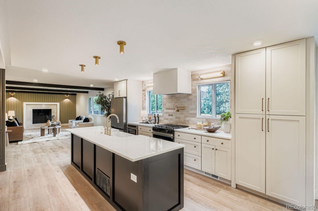 This beautifully updated 5-bedroom, 4-bath home in Englewoods sought-after Hills at Cherry Creek neighborhood blends style and function with warm, natural finishes throughout. The open main level features a designer kitchen with island, stainless appliances, and pot filler, connecting seamlessly to the dining area, breakfast nook, and family room with a dramatic paneled fireplace. A main-floor office adds convenience. Upstairs, the private primary suite offers a walk-in closet and spa-like 5-piece bath, while additional bedrooms are spacious and bright. The large finished basement with wet bar is perfect for entertaining. Located in the highly-rated Cherry Creek School District (Cherry Creek HS), this property provides convenient access to the Denver Tech Center, shopping, dining, and recreational opportunities within walking distance to Cherry Creek Reservoir, making it the perfect location for any family.