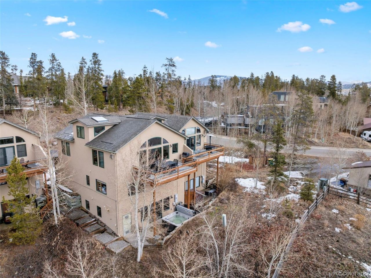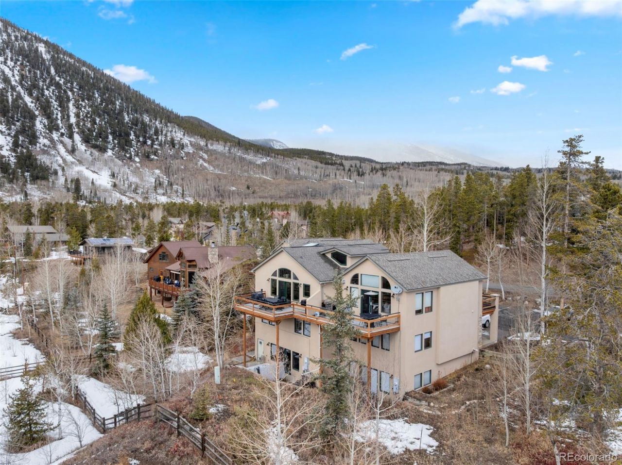 Stunning views of Mount Royal fill the wall of windows in this sunny-side Frisco duplex/townhome. Offering 4 bedrooms plus a loft, vaulted ceilings, and abundant natural light, the open living area flows to a large deck with panoramic mountain views. The lower level features a bedroom with a wet bar and a private patio, ideal as a guest suite or second living area. Complete with a 2-car attached garage and an unbeatable location near Main Street and trails, this is mountain living at its best. Town of Frisco has a 1% transfer tax.