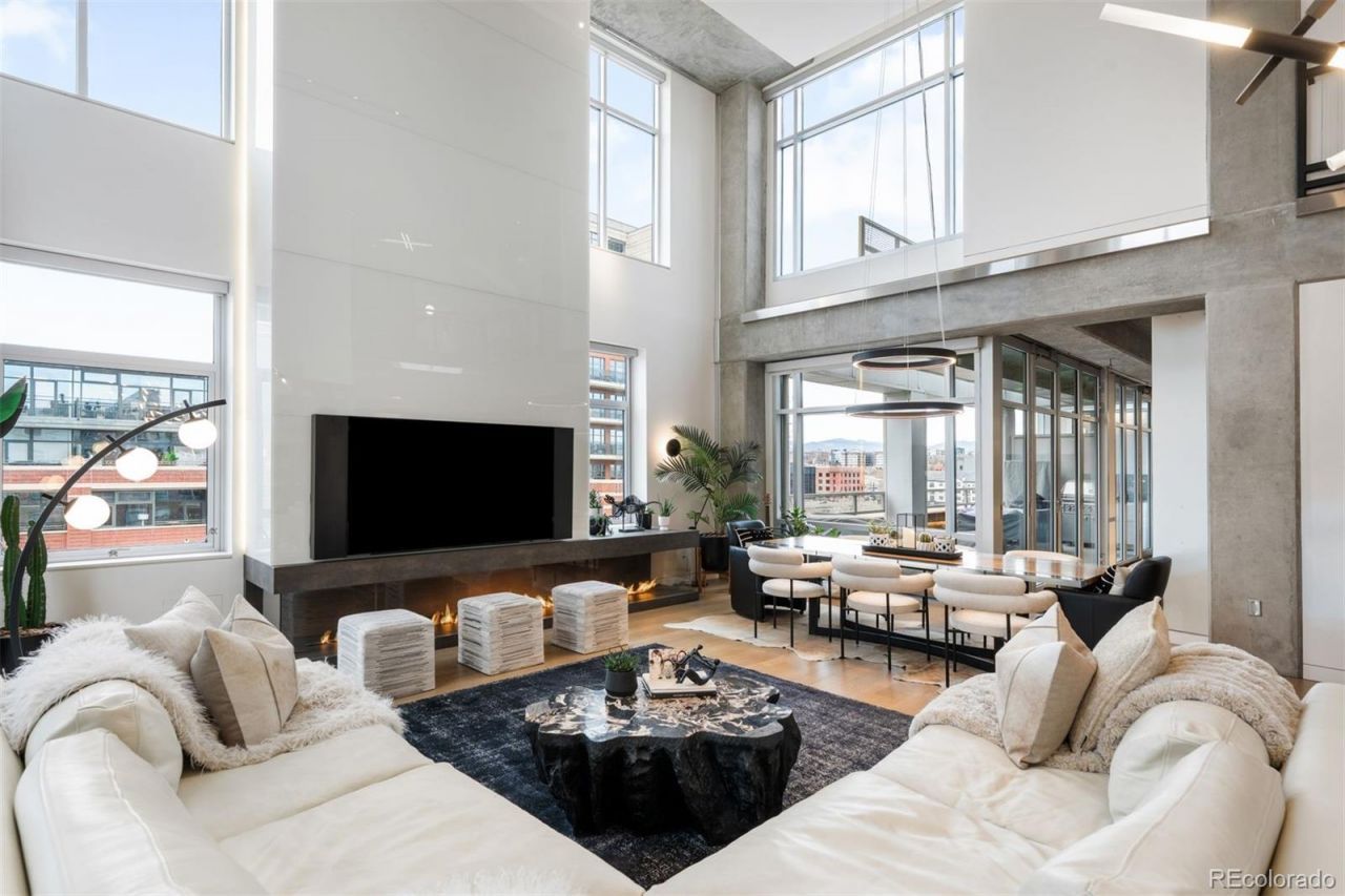 Perched atop one of the most desirable buildings in Downtown Denver, Penthouse 6 is a rare opportunity to own a custom-designed, multi-level residence in the heart of Riverfront Park, arguably the citys most walkable neighborhood. Encompassing over 4,000 square feet of artfully curated interiors, this penthouse offers a rare blend of architectural sophistication, privacy, and sweeping mountain-to-city views that frame every living space. Completely reimagined with no expense spared, the residence is anchored by a showstopping chefs kitchen with Miele appliances, a built-in espresso machine and steamer, and striking leathered granite waterfall countertops, all flowing seamlessly onto a private terrace ideal for al fresco dining. The soaring living room impresses with a bespoke 12ft glass fireplace, a rock climbing wall, designer wall tile, and floor-to-ceiling windows. Additional main-floor highlights include a chic guest suite, a custom powder room, a cozy reading lounge beneath the architectural staircase, and a full-sized laundry room. Upstairs, the serene primary suite is a true sanctuary with a private balcony, spa-like five-piece bath, sauna, custom walk-in closet, and an additional washer/dryer. Two additional bedrooms and a loft lounge with outdoor access complete the upper level. This is the only residence in the building to offer a fully private rooftop deck, creating an exceptional outdoor retreat complete with a hot tub and sweeping panoramic views. The home is powered by a Savant automation system, giving you full control of lighting, climate, and media from your phone. Includes three oversized deeded garage spaces in a secure, heated building. Residents enjoy professional management, premium amenities, and direct access to Commons Park, Confluence Park, Union Station, Larimer Square, the Ballpark District, and Denvers best dining and cultural venues. A lifestyle of elegance, privacy, and connection to the citys very best.