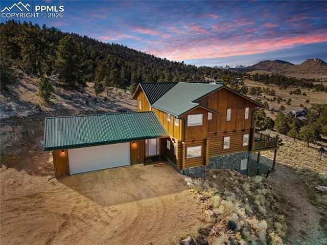 This "Lucky Penny" property in Westcliffe is luxury mountain property without the high-end price. With entertaining in mind, this home was designed to have cozy gathering spots with plenty of space to stretch out. When you pull into the driveway, the surrounding mountains immediately get your attention. The house was built on the hillside in an optimal perch to capitalize on the views every direction. The main entry is covered & friendly from the elements. When you walk inside, you can drop gear in the mudroom. This is also where you enter from the attached garage. The main floor is the custom kitchen, dining, & living room. Each room has a special feature. Custom cabinetry & varying counter height were built into the kitchen for baking, food prep, & easy entertaining. You can have a lot of people in this kitchen without bumping into each other. The dining room fits a huge table that will seat plenty & the French doors give prime seating with a view to everyone in the room. Those doors open to a deck that spans the width of the home. A floor to ceiling stone fireplace in the living room ties in the log cabin ambience. The primary suite is upstairs with an en suite bath that includes a step-up soaking tub. There is a clever shaving sink & cabinet in the closet & the huge laundry room has extra storage & a utility sink. Downstairs is finished with a kitchenette & full-size bathroom. There are big closets for plenty of storage in this lower level. Enjoy this spot year-round or as a second residence. Located an hour from Pueblo & an hour and a half from Colorado Springs, this is a perfect spot to have a weekend getaway from the city. The lot is 35 acres & perfect for fire pit nights, exploring the woods on the property, & of course enjoying the stillness. It is easily accessible from the main highway & only a few minutes into the town of Westcliffe where there is a bowling alley, restaurants, coffee shops, & shopping. It is a sweet Colorado property ready for you!