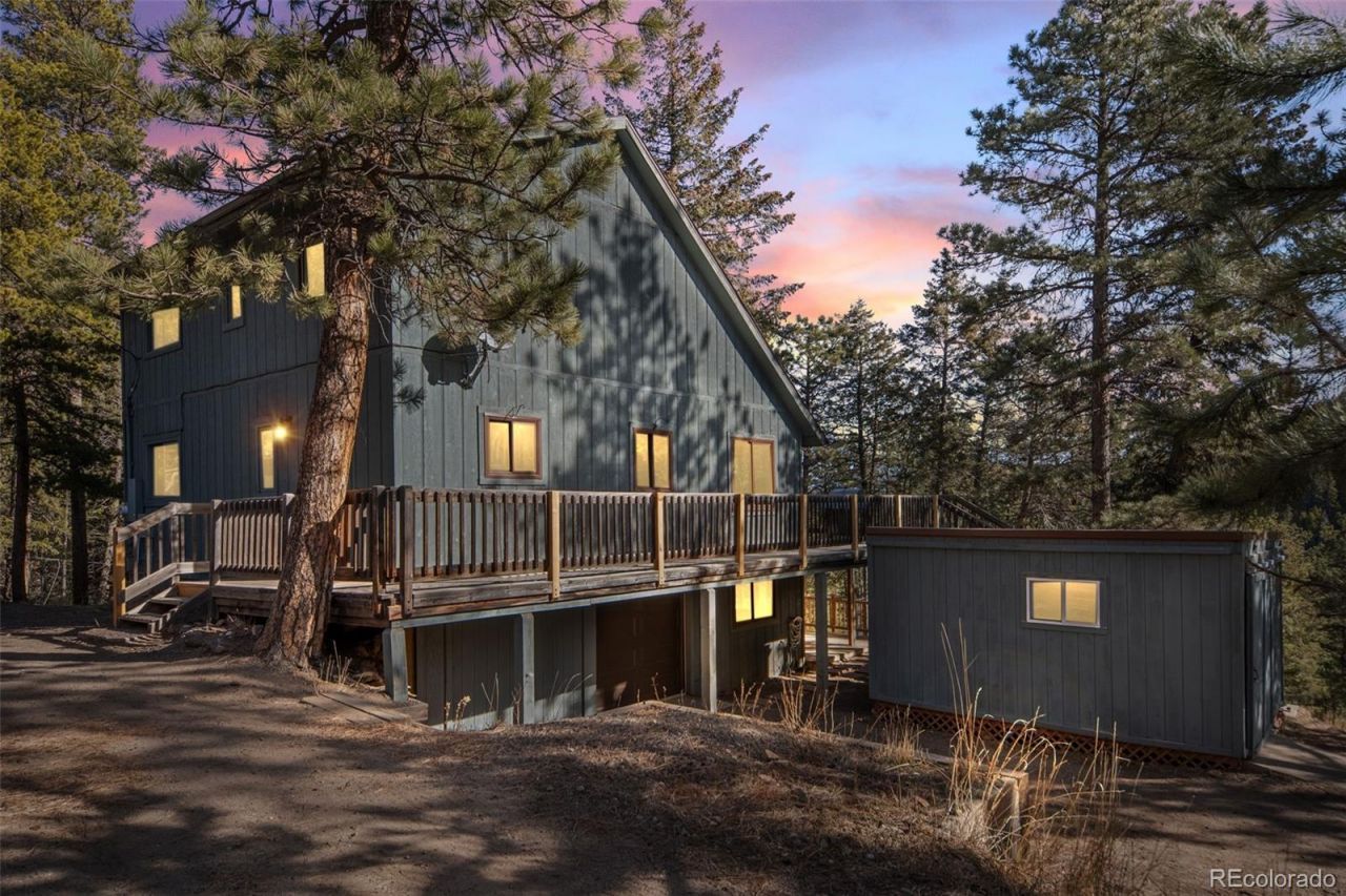 Welcome to your private mountain escape in Evergreen?an updated 3-bedroom home that lives large with open surroundings and a direct border to Arapahoe National Forest. With undeveloped land behind you, sweeping forest views, and Maxwell Falls within walking distance, this property delivers that rare more land than the deed feeling. The setting shines from the start: RV parking with 30-amp service, fire mitigation, a secluded backyard, horseshoe pits, and a quaint kids clubhouse. Outdoor lovers will appreciate the large shed with a wood loft plus room for recreational toys and more. Inside, mountain character meets smart upgrades?log/wood accents, fresh interior paint, and updated lighting. The remodeled kitchen features newer stainless-steel appliances. The main bath offers new tile, a corner shower, and a stacked high-efficiency front-load washer/dryer. The open dining/living area includes vaulted ceilings and a centrally located pellet stove for cozy, efficient heat. One spacious bedroom sits on the main floor. Upstairs, enjoy a renovated full bath and two large bedrooms with newer carpet. The walk-out lower level has new stair carpet and luxury vinyl tile, a family room with a wood-burning fireplace, and a true hobby/crafters paradise with counters, cabinets, and a bonus room. A generous attic provides exceptional storage. Extras include a newer water heater and updated filtration/softener system. Served by Brook Forest Water District, youll have peace of mind?water flows even during mountain power outages. Just 10 minutes to downtown Evergreen. Multiple big decks and a hot tub make forest days last longer. Soak under the stars, host easily, and step out into the forest?right from your yard. Sip coffee as elk and deer pass by, then unwind under the stars?this is Colorado mountain living with modern comfort and room to roam. Welcome home.