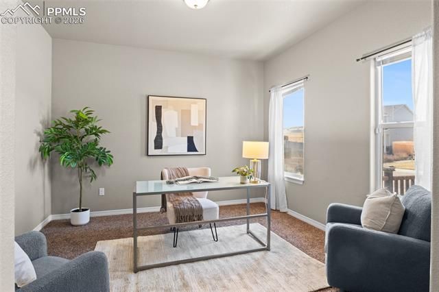 Move-in ready and thoughtfully updated, this home features brand new carpet on the main and upper levels along with new luxury vinyl plank (LVP) flooring, creating a fresh, modern look with durable, low-maintenance appeal. The updated flooring offers a clean, cohesive feel throughout the home. The functional floor plan provides inviting living spaces filled with natural light and an easy flow for both everyday living and entertaining. Upstairs bedrooms are well-sized, with new carpet adding warmth and comfort, while the LVP flooring on the main level delivers the modern finish buyers are actively searching for. Enjoy beautiful mountain views, including views of Pikes Peak, offering a true Colorado backdrop. A projector and screen setup creates the perfect space for movie nights, game days, or hosting friends, adding a fun and functional bonus feature that sets this home apart. Well-maintained and ready for its next owner, this property combines key updates, scenic views, and entertainment-ready features in one move-in ready package.