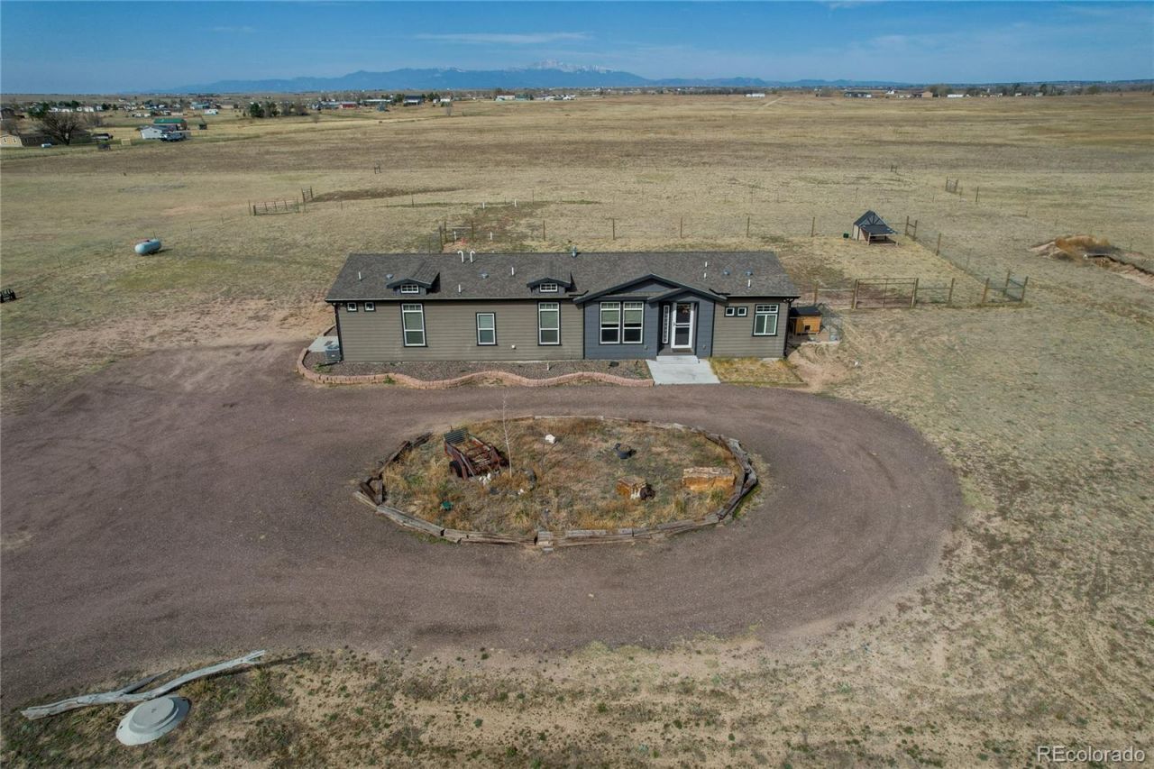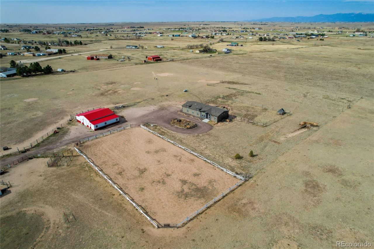 Experience the freedom of wide-open Colorado living?37 acres of equine-ready land just minutes from city conveniences. This beautifully upgraded ranch-style home delivers true main-level living with modern finishes, thoughtful functionality, and unforgettable Pikes Peak views.Inside, youre welcomed by a cozy family room with shiplap walls, built-ins, and custom bookshelves. The gourmet kitchen is built to impress, featuring a gas range, vent hood, pot filler, expanded island, upgraded cabinetry, separate pantry, and abundant storage?all flowing into the dining area and out to an expansive patio ideal for sunrise coffee, BBQs, and Colorado evenings. The primary suite is a true retreat with a spacious walk-in closet with a center island and a luxurious 5-piece bath featuring a spa shower and soaking tub. Two additional bedrooms, a full bath, flex office/family space, and a smart laundry/mudroom with exterior access complete the home. RV hookups are available at both the house and the barn.Outside is where this property becomes truly rare: an impressive barn with 12 steel walls, tack/feed room, pre-plumbing for hot water, multiple outlets, LED lighting, exterior motion lights, welded steel tie areas, and a concrete cross-tie wash station. Five frost-free hydrants are placed across the acreage. Youll also love the double-entrance riding arena, covered pens with 20 runs and bull gates, multiple shelters, quarantine pens, large paddocks, steel loafing sheds, plus a ¼-mile equine track and regulation-size polo field. Perimeter fencing is wired for electric fencing?ready for your setup.This is the kind of property that doesnt come around often. Schedule your private tour today?come walk the land, tour the barn, and see what 37 acres of possibility feels like in person.
