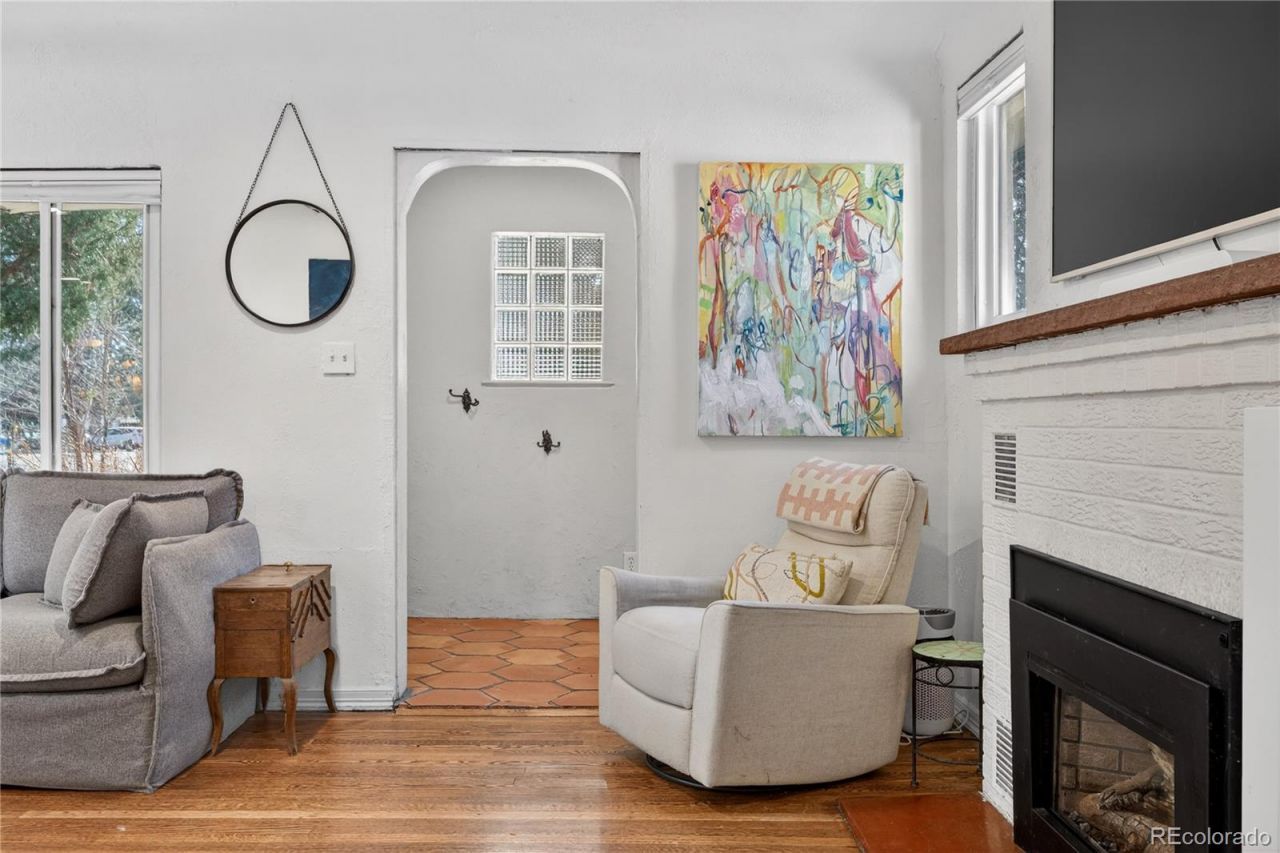 Gorgeous, fully updated brick ranch in a highly desirable Lakewood community, offering a rare blend of contemporary style and timeless charm. Set on a sprawling half-acre lot directly across from Morse Park, this move-in-ready one-level home showcases quality workmanship, and a thoughtful layout designed for modern living. With mature trees, minimal development behind the property, and incredible neighbors, the setting feels both private and connected, with mountain views through the trees and glimpses of downtown just steps from your front door. Inside, thick original walls provide excellent insulation, while extensive updates create a fresh, modern feel. Find hardwood floors, radiant heating, an open floor plan, and generously sized rooms. The beautifully updated kitchen and living spaces connect seamlessly to the outdoors through striking accordion doors that open to a welcoming front patio and a large backyard, perfect for entertaining, relaxing, or future expansion. The new primary bathroom features a soaking tub and bidet, while a second bathroom has been thoughtfully refreshed. Nearly everything has been updated in recent years, including appliances, washer and dryer, accordion doors, bathrooms, electrical panels, plumbing, and a tankless water heater with combi boiler. The tandem garage has been finished and converted into a versatile office and bedroom, adding flexibility for multi-generational living, guests, or work-from-home needs. Additional upgrades include a mini-split system, electric fireplace, motion-activated closet lighting, and a temporary electrical panel already in place for a future garage or workshop. The expansive lot offers exceptional outdoor space with a back entrance, water rights through Consolidated Mutual Water, and plenty of room for an ADU. A 2021 Olympia 26BHS RV is included, adding even more value and flexibility. With its unbeatable location, thoughtful updates, this home is a true Lakewood gem!