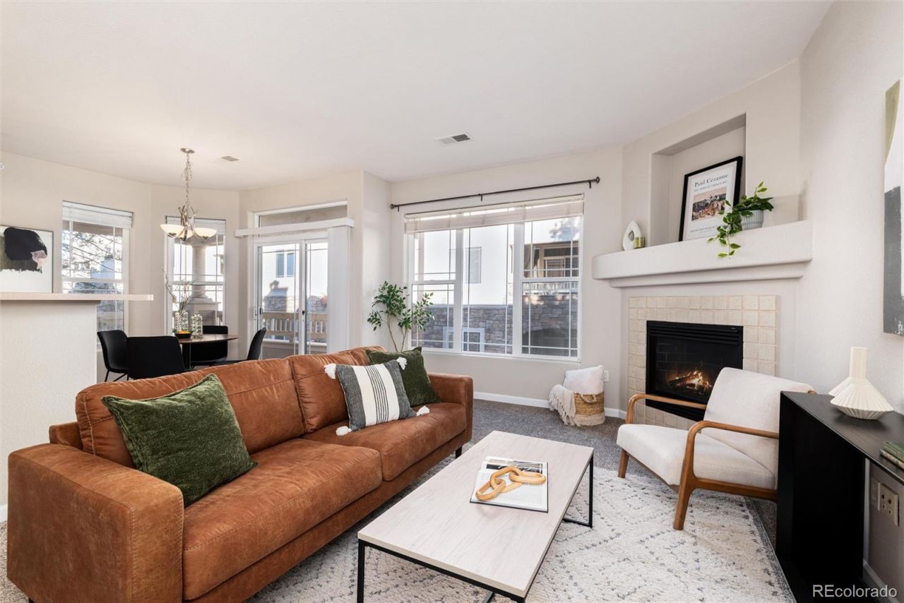 Welcome to Redstone Ridge in Littleton! This bright and move in ready 2 bedroom 2 bath condo with a detached garage offers comfort convenience and low maintenance living in one of the areas most desirable communities.Step inside to an open and airy floor plan featuring 9 foot ceilings abundant natural light and fresh interior paint. The inviting living room is anchored by a cozy corner gas fireplace creating a warm and welcoming space to relax or entertain.The kitchen has been updated with all new stainless steel appliances and flows seamlessly into the dining and living areas making everyday living easy and functional.This home has been exceptionally well cared for and it shows. It is super clean truly move in ready and thoughtfully maintained throughout. Recent updates include a brand new water heater and a recently serviced and certified Trane HVAC system giving you peace of mind.Enjoy indoor outdoor living on your private covered corner balcony which offers extra privacy and a perfect place to unwind.Additional features include a built in desk area ideal for working from home a separate laundry room with washer and dryer included and the convenience of a detached single car garage.Both bedrooms are spacious and comfortable with walk in closets. The primary suite features double sinks a large vanity and a linen closet creating a relaxing retreat.Residents enjoy access to a pool hot tub clubhouse and fitness center. Located near shopping dining and trails with quick access to C 470 this is Littleton living at its best.